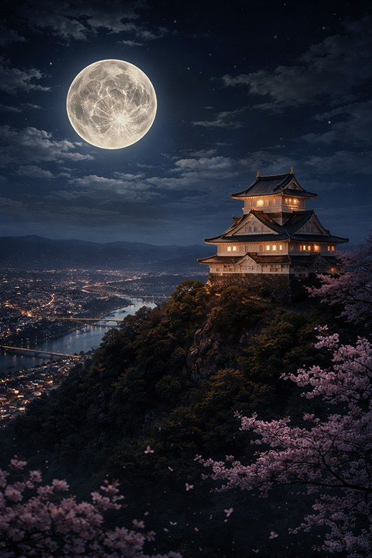 AIに頼んで岐阜城と満月を描いてもらいました。