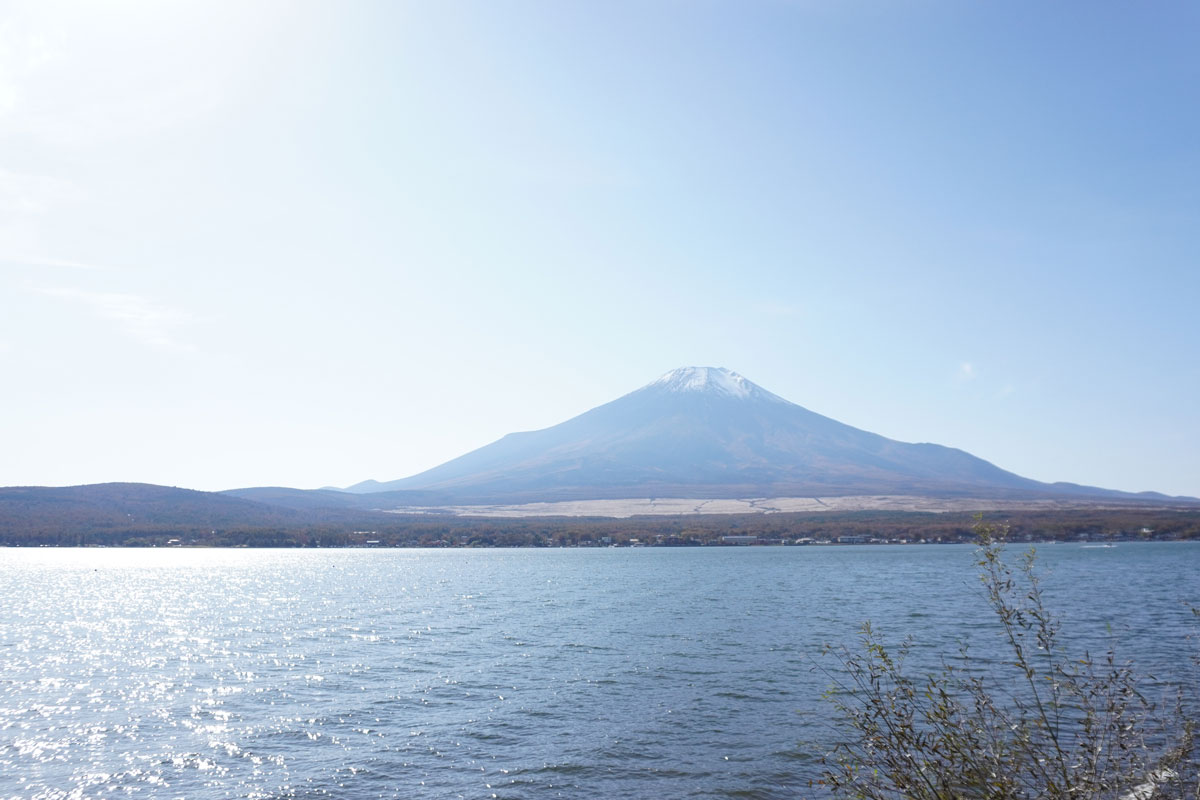 今日も昨日までの続きで山中湖からです。車で移動して、湖の北側から見た富士山です。