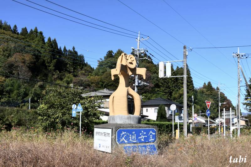 145号線(日本ロマンチック街道)新井の交差点にハート形土偶が有ります。群馬県吾妻郡東吾妻町の郷原遺跡からほぼ完全な形で見つかった土偶が有名で、高さ30.5センチあります。