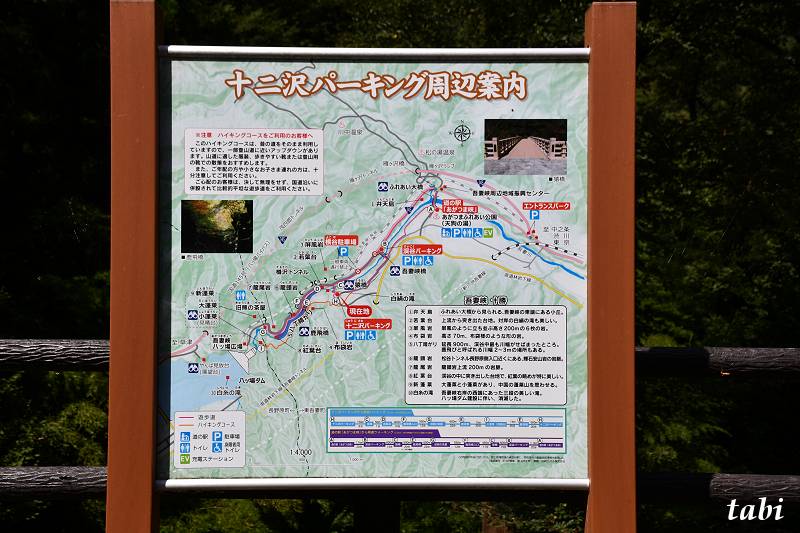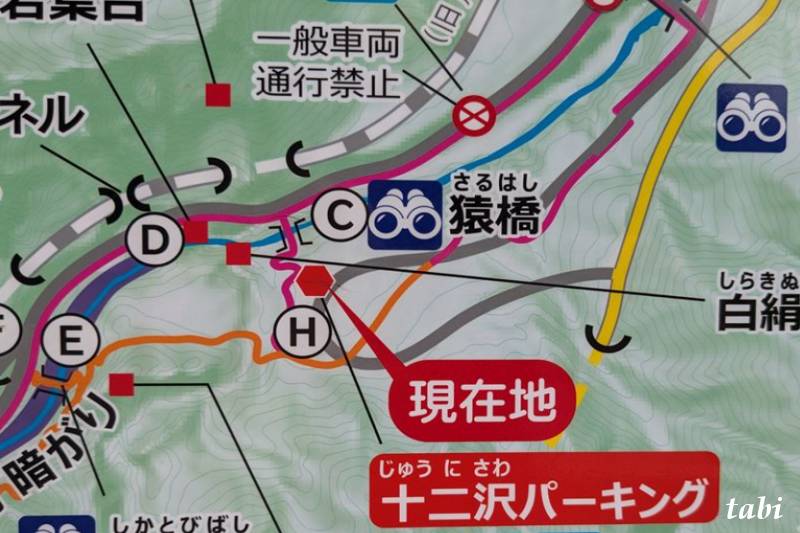 躊躇なく遊歩道の駐車場が鹿飛橋に近い場所に設置された。それが十二沢パーキングである。かつ、周回できる新橋も増設した。それが「猿橋」である。