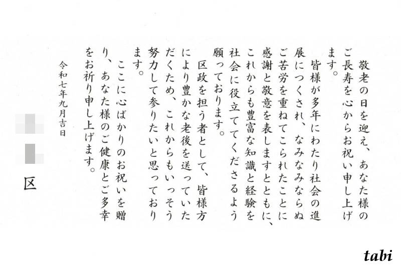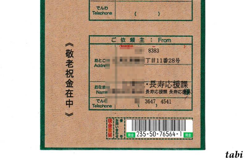 私が住む区役所からの「敬老祝金」でした。自治体が長寿のお祝いとして、特定の年齢に達した市民に贈るお祝い金です。