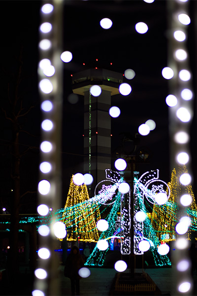 クリスマスイルミネーションを傘を差して観るのもいいかも。