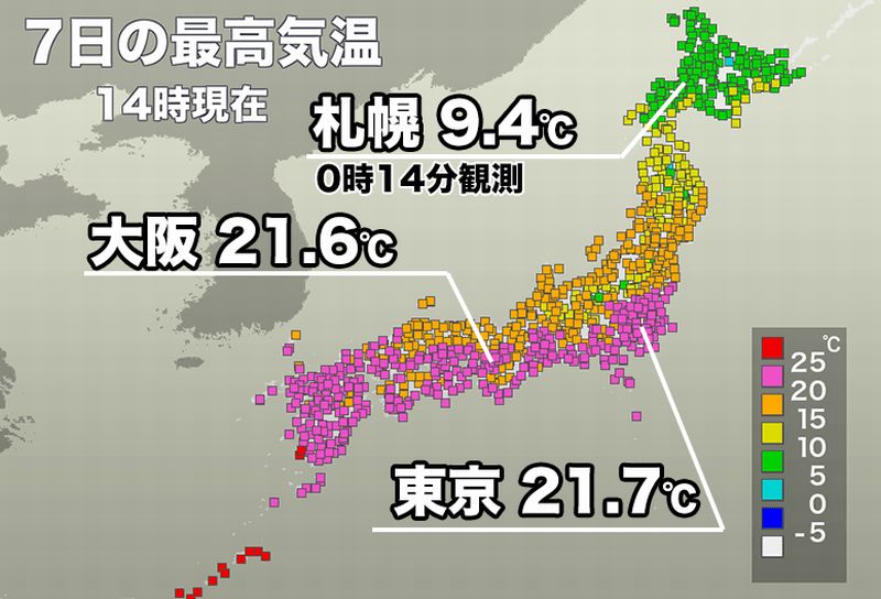 北海道では立冬らしい寒さになりましたが、関東から九州にかけては晴天で、