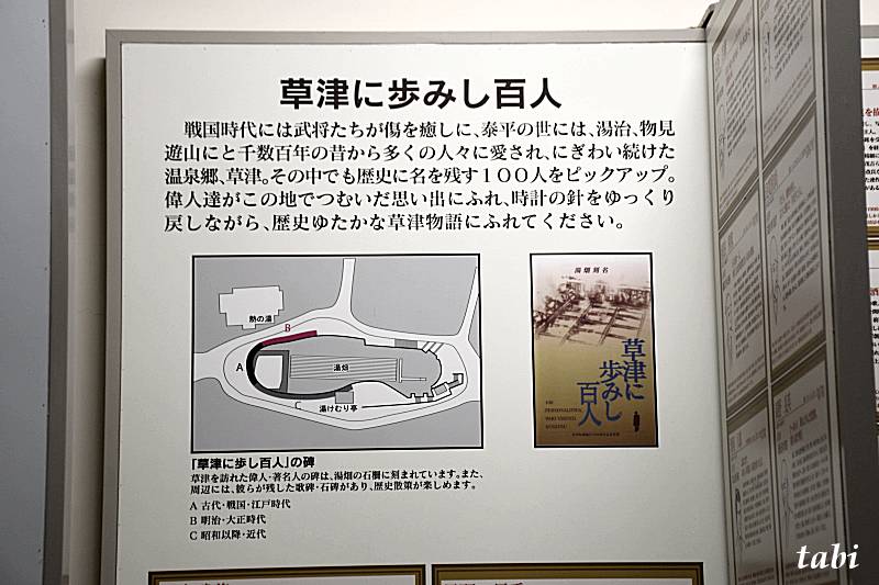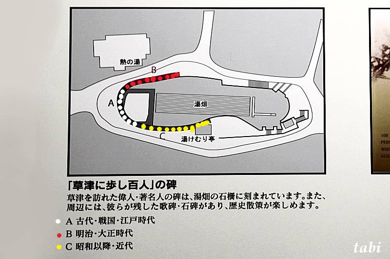 千数百年の昔から多くの人々に愛されてきた草津温泉にゆかりのある人物をピックアップしています。湯畑周辺には、彼らが残した歌碑や石碑もあり、歴史散策を楽しめます。