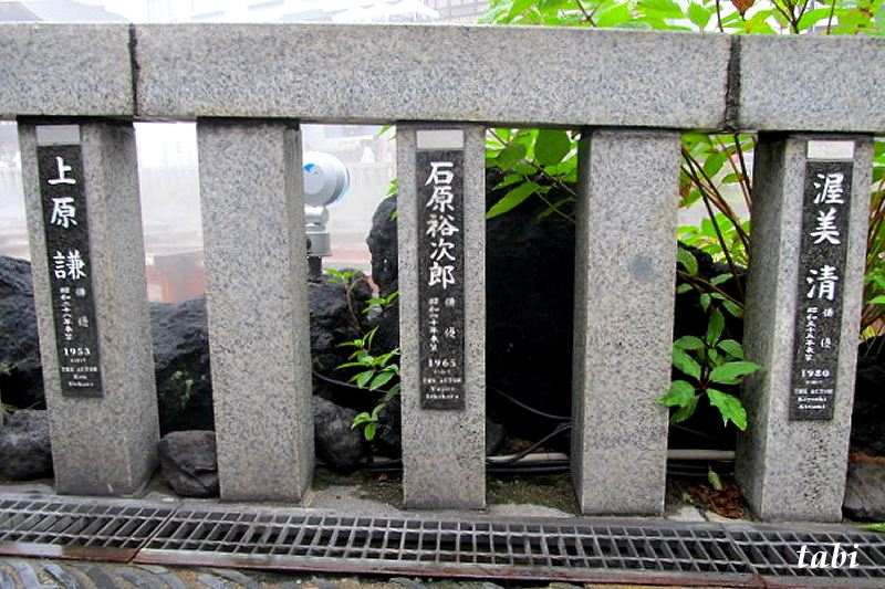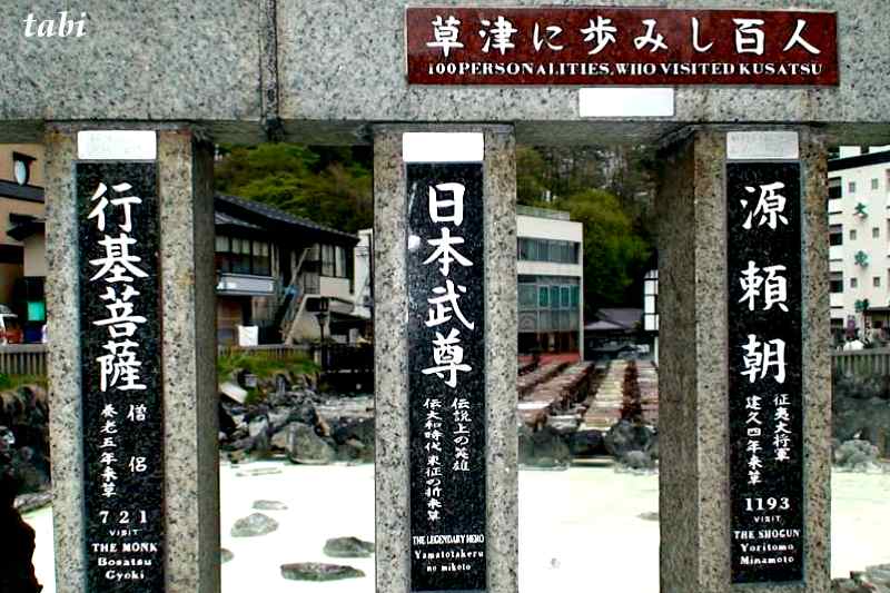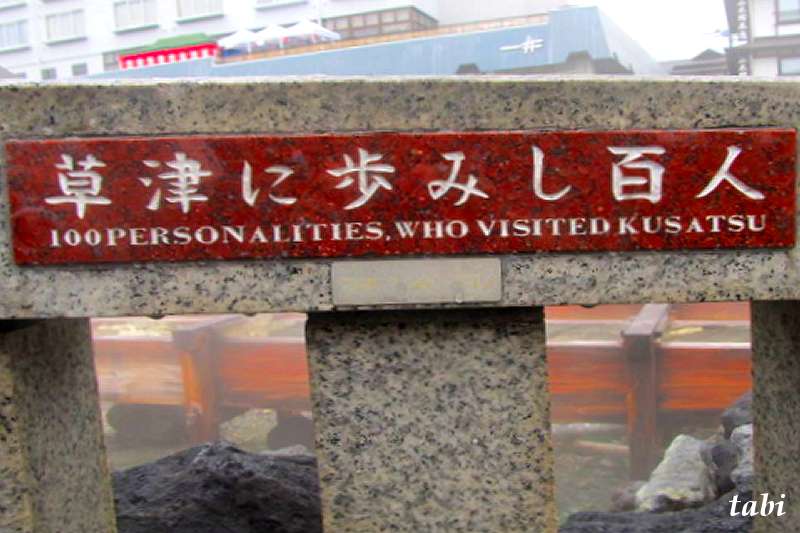 湯畑の石柵には、日本武尊や源頼朝といった歴史上の人物から、小林一茶、高村光太郎、などの文化人、さらには政治家まで、幅広い分野の人物が刻まれています。