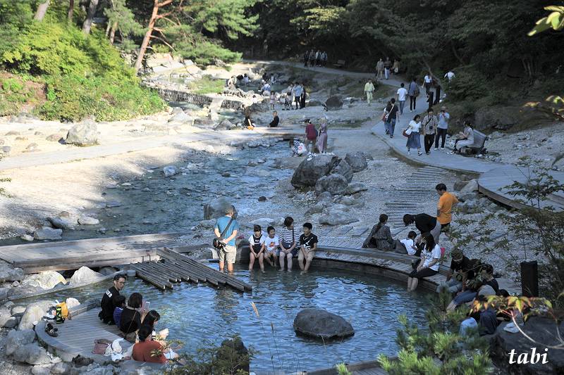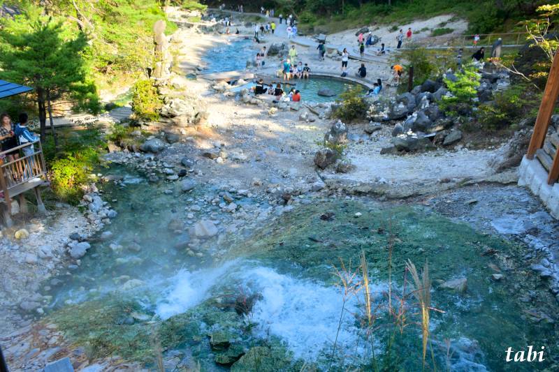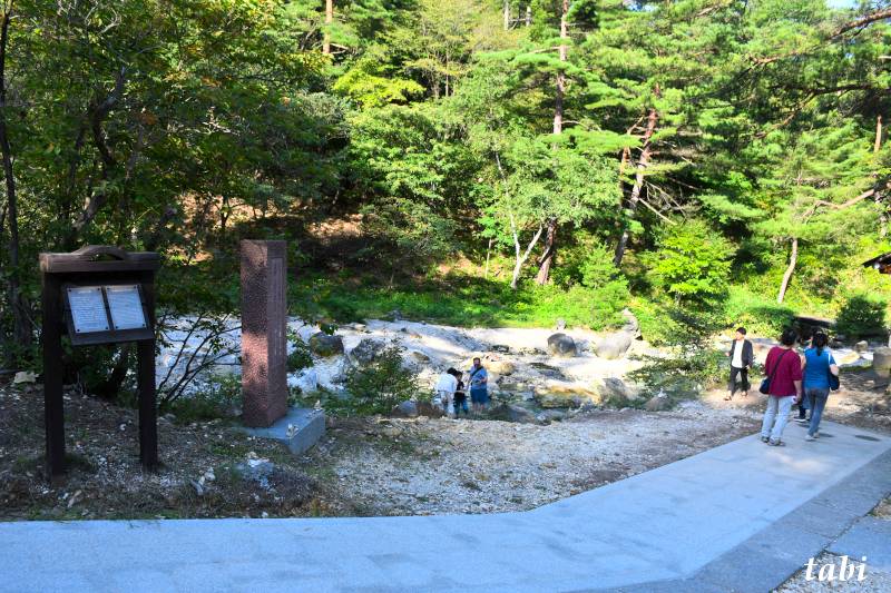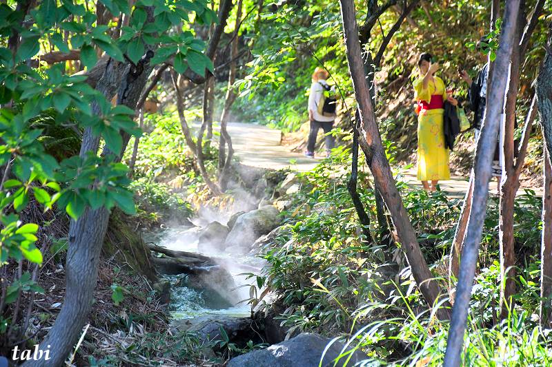 この一帯には、50度以上の温泉が毎分1万5千リットルも湧き出ており、それが湯川となって流れています。