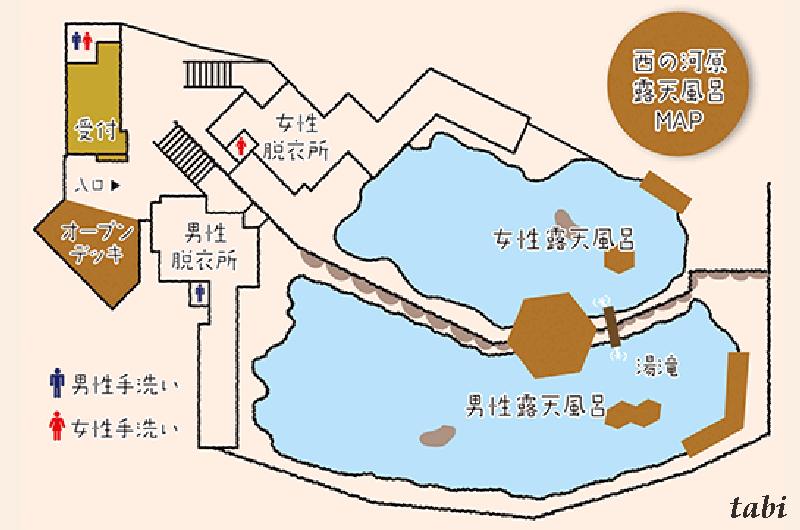男女合わせて500平方メートルという日本でも有数の広さを誇る開放的な露天風呂です。内湯はなく、露天風呂のみで大自然を満喫できます。