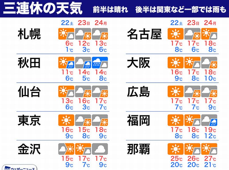3連休は天候に恵まれて行楽地は混雑するでしょうね。