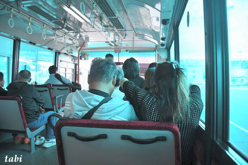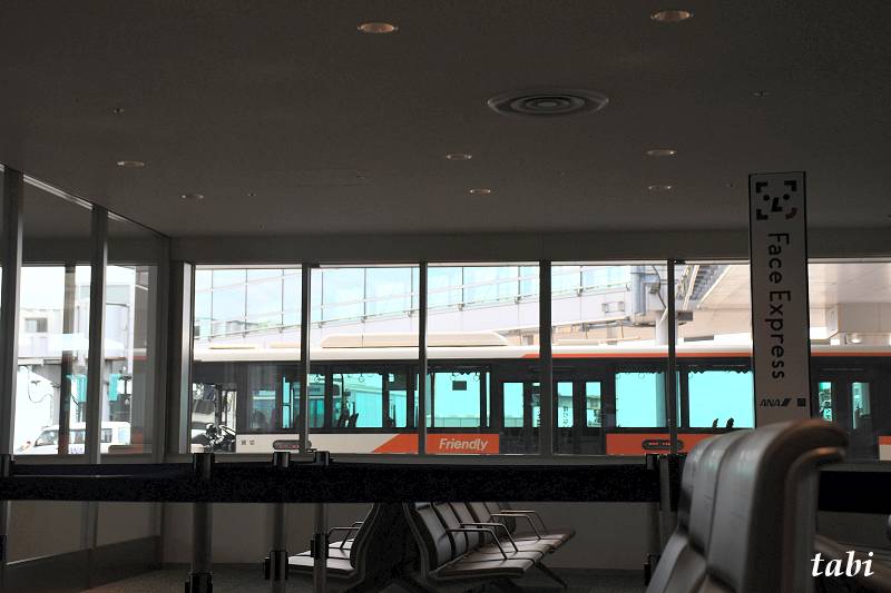 乗客はバスで飛行機まで移動し、タラップを使って乗り降りするのが一般的です。