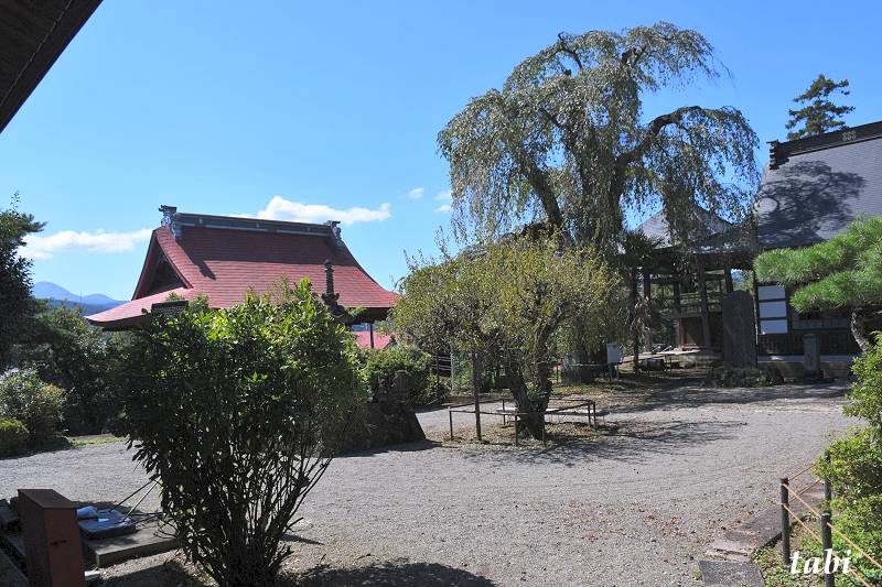 境内には町指定天然記念物のシダレザクラやゆかりの深い人物の墓、石仏、供養塔などが点在しています。