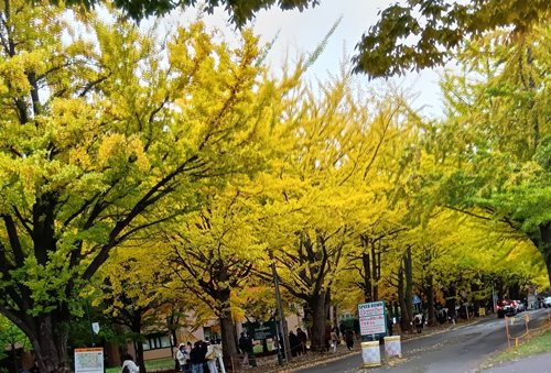 帰り道、少し色ずいたイチョウ並木を歩いてきました
